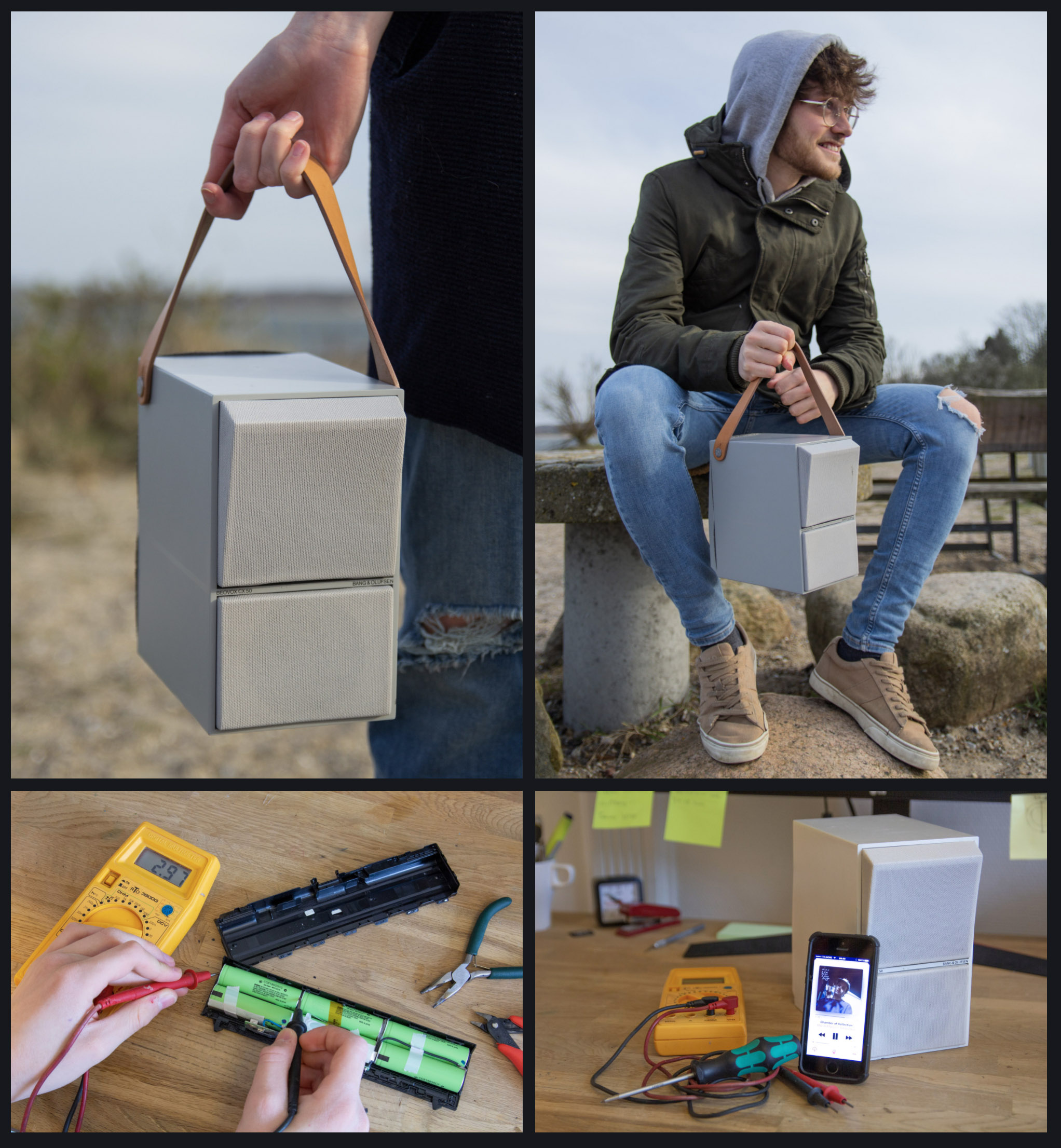 “The chances are good that you can find a box of unused electronics without leaving your front door. We all have a box like this, unused electronics that don’t fit our needs anymore, but that seem too valuable to throw away. A high-school student from Struer has taken his box, plus a Beocreate 4-channel amplifier and a Beovox CX50 loudspeaker from his parents stash of unused electronics and made his own version of an ideal speaker. From recycled laptop batteries he has made a powerful and cost-effective rival to buying a new B&O Beolit.”