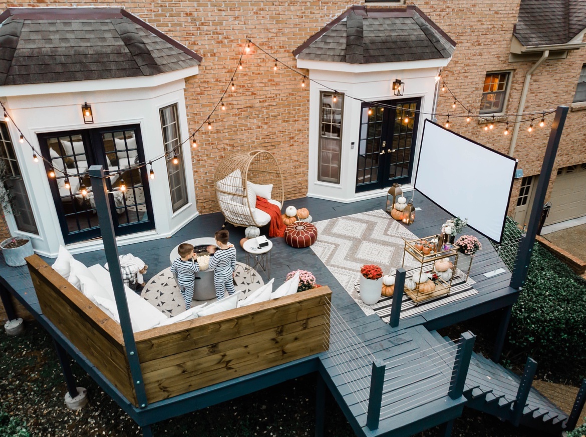 After our blog article back in June 2020, we focused on outdoor entertainment as the glorious summer lured many of us outdoors and into our gardens. This trend will continue again into 2021 as many of us are seeking escape from the confides of being cooped up indoors for the early part of this year. Our focus will begin to shift outdoors as the weather warms and we will look at investing long term in our gardens and outdoor entertainment spaces. This will include summerhouses, fire-pits, outdoor bars and kitchens and pizza ovens. I love the idea of carefully zoned areas and an outdoor cinema as shown in the example below.