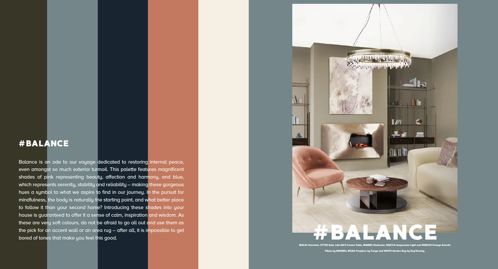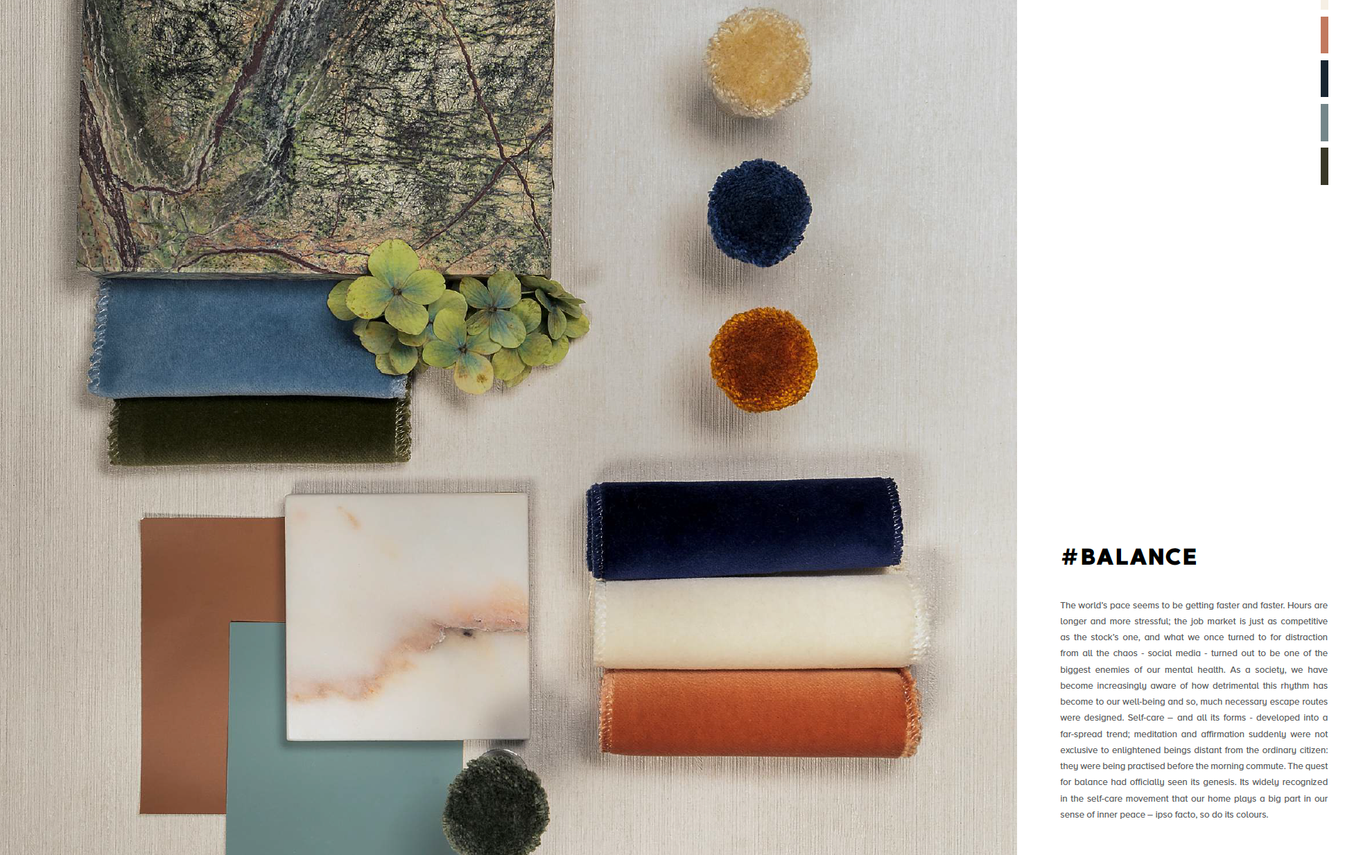 Warm tones of burnt ember, terracotta and clay will contrast with forest colours including sage, pine and turquoise which will have a soft and cocooning effect in our interiors.