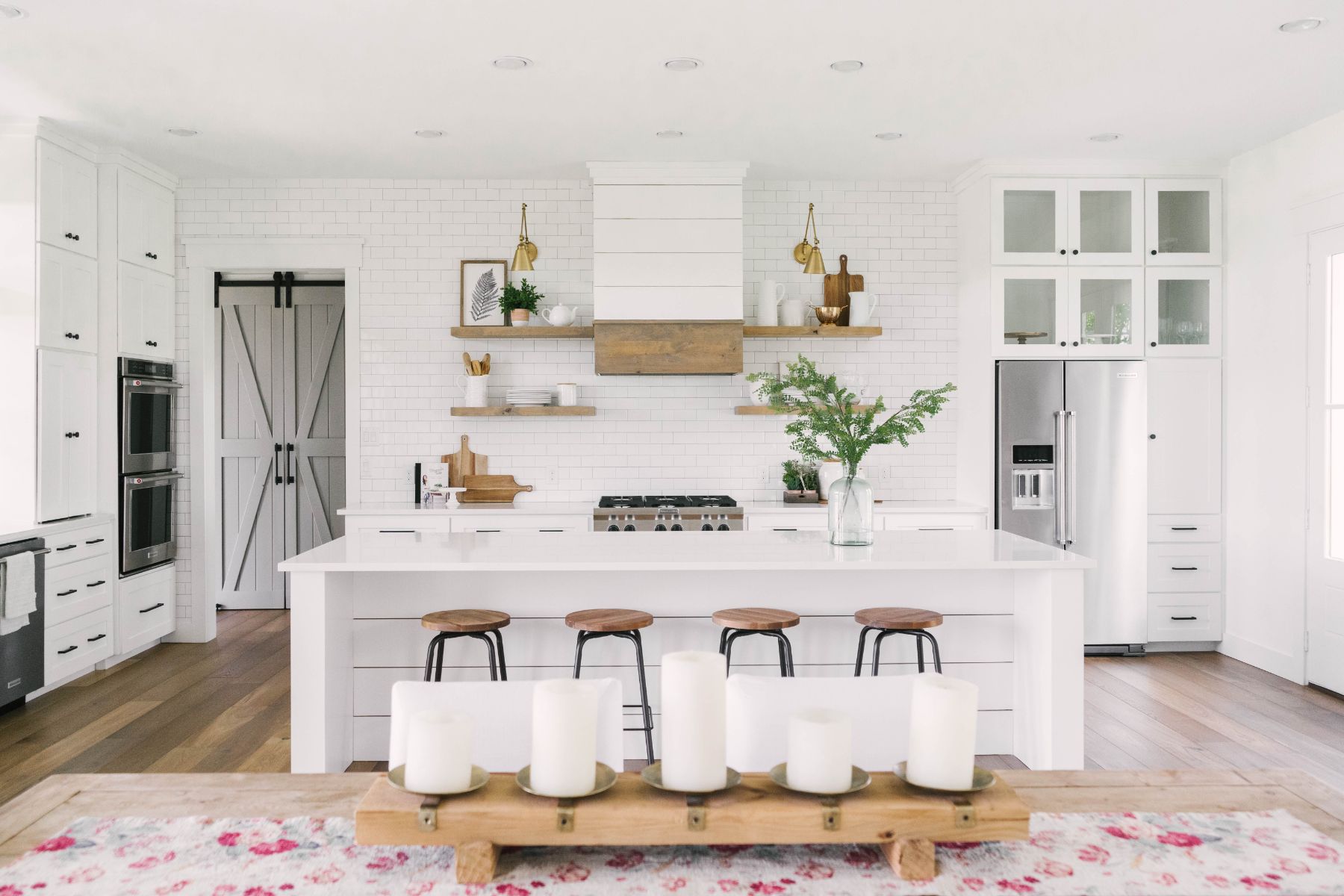 After nearly two decades of colourful kitchen trends, many of us are looking back to the trend at the turn of the century and the return of white kitchens. The neutral light enhancing, and reflective choice creates clean looking cooking spaces. White cabinets and worktops offer a hygienic aesthetic with bare wood accents, such as pine, on cupboard/drawer handles and joinery/furniture.