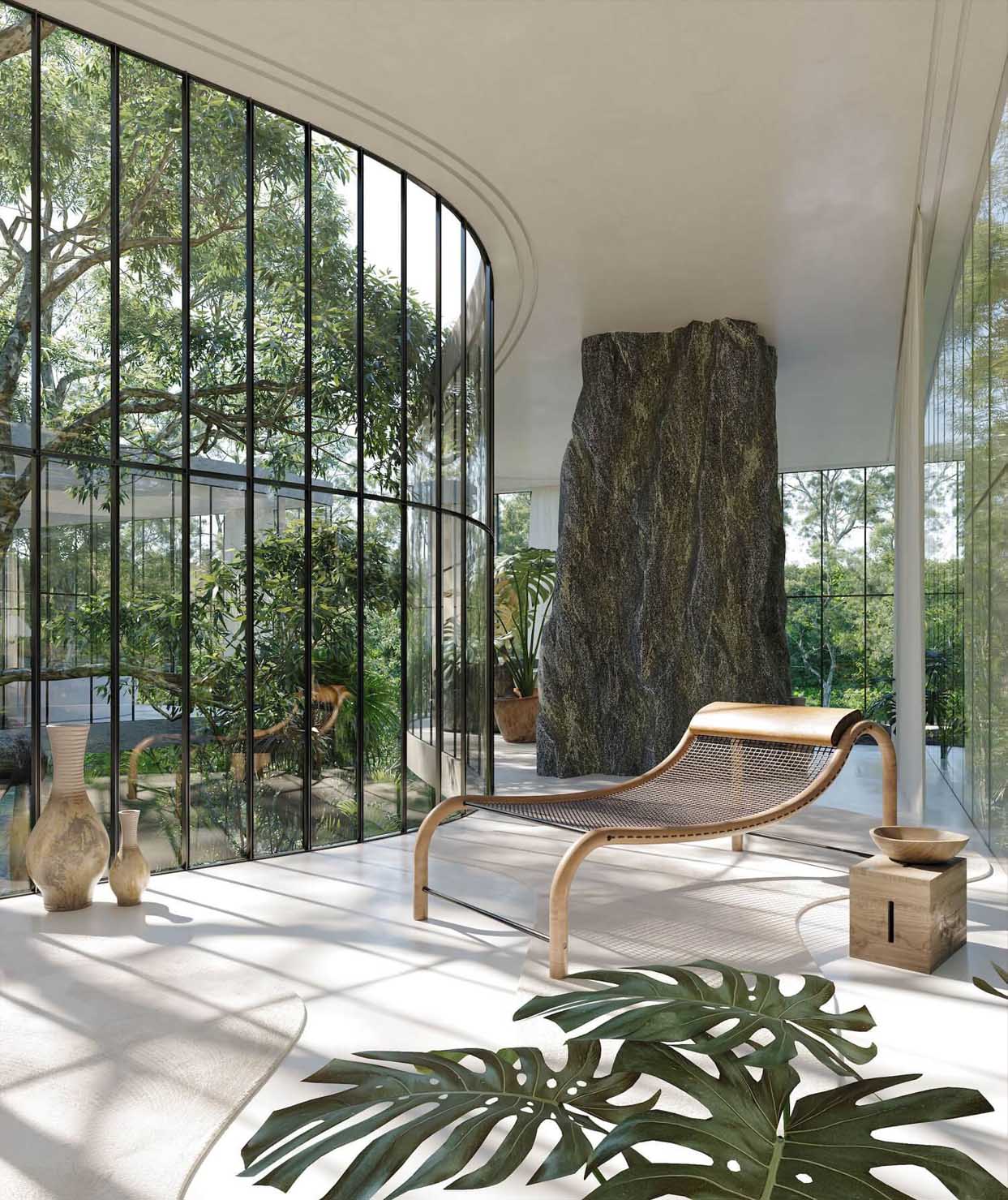 The key to connect biophilic design and sustainability is when it comes to sourcing your materials and furniture pieces. Prioritising recycled materials, energy-efficient solutions, as well as low VOC paints are only some of the ways we can think more sustainably when it comes to designing and curating our spaces. A sustainable material we love to use at TOI is the bamboo silk carpet, which is a fantastic renewable resource being very easy to grow, reaching up to 23 metres a year.