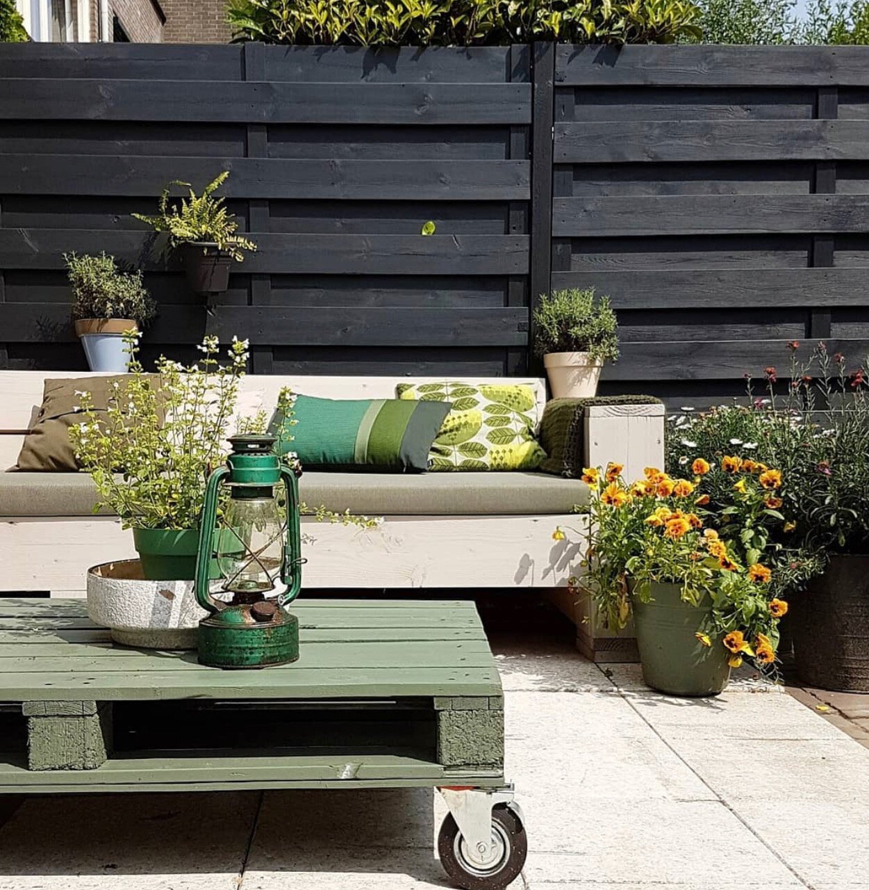 We’ve been pretty lucky, weather wise, this Spring – many of us who have outdoor space have spent our time sprucing up our garden, cleaning down the patio, cutting back the hedges and adding colourful flowers to planters and boundaries. If you’ve not started this yet, then begin now! First top tip is to clean up the outdoor area you are planning to entertain in. Once you’ve done your spring cleaning inside, then crack on with outside! We love how this pallet has been up-cycled with a sand down, lick of paint with the addition of industrial castors – turning it in to functionable outdoor coffee table. Genius!