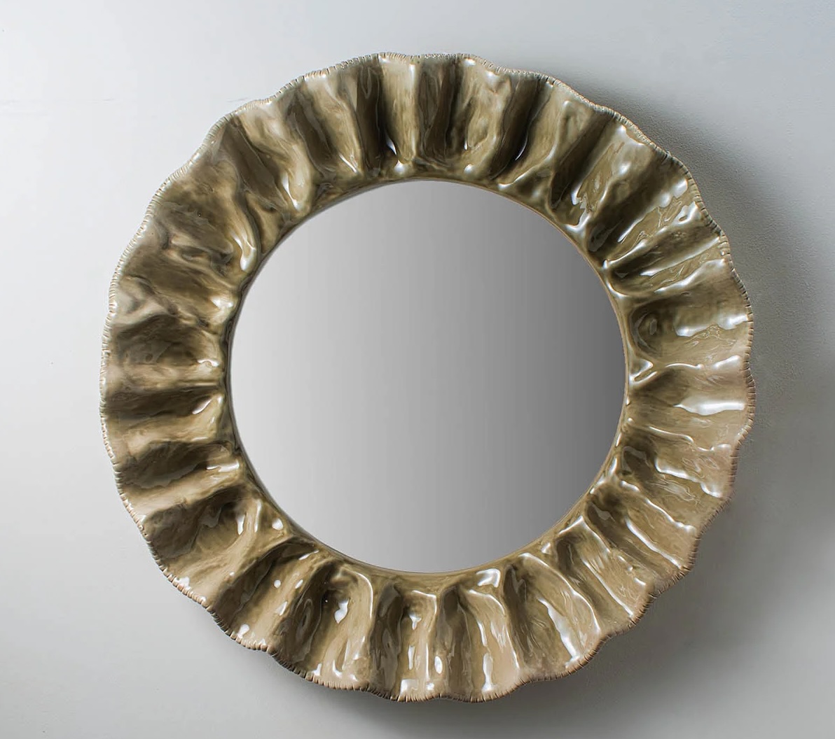 One of the most exciting designs from the Spring 25 collection is the ambitious Galia mirror, with such energy and movement, it requires a complex mould made in several different parts to create the shape. It’s an asymmetrical design that is both delicate and robust. It’s hard to ignore and available in beautiful new glazes including Safari, Crème Brulée and Capri.