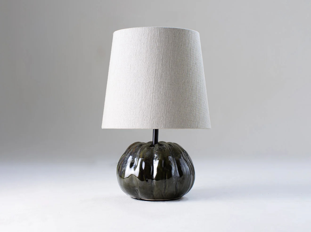 The Pumpkin lamp is one of our smallest ceramic table lamps. Its undulating textures sculpted from life. Now available in three new glazes, hand-mixed by Porta Romana including Campfire, Sunflower and Snowflake. Also available in Toad and Plaster White, or any custom painted finish of your choice.