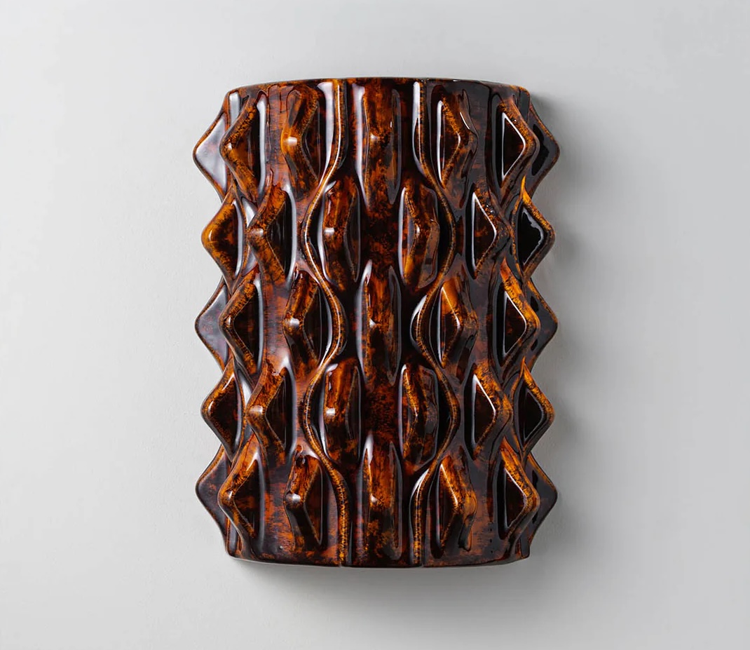 The Baobab table lamp resembling the form, shape and texture of a Bajan seed pod has been an important part of the Porta Romana collection for 15 years. For Spring 25, the design has been reinterpreted as the striking Brae wall light in a range of irresistible glazes including Tigers Eye, Pudding and Almond.