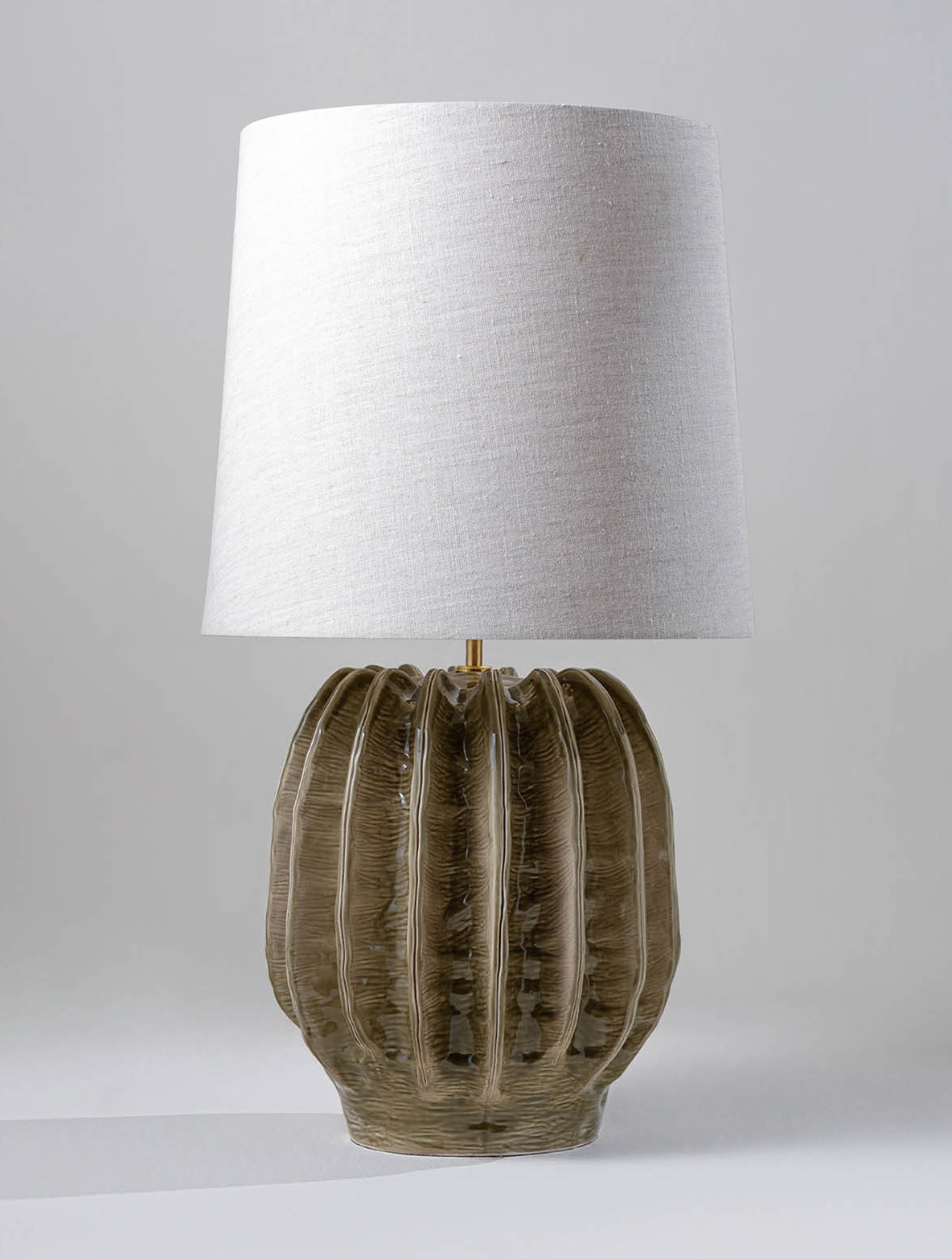 One of the most exciting designs from the Autumn 24 collection, Finley — a large-scale hand-cast table lamp inspired by the abstract shape of a cactus with rippled, asymmetrical fins on all sides. Now available in Crème Brulée and Safari glazes, the Finley Ceramic Lamp seems even more spectacular.