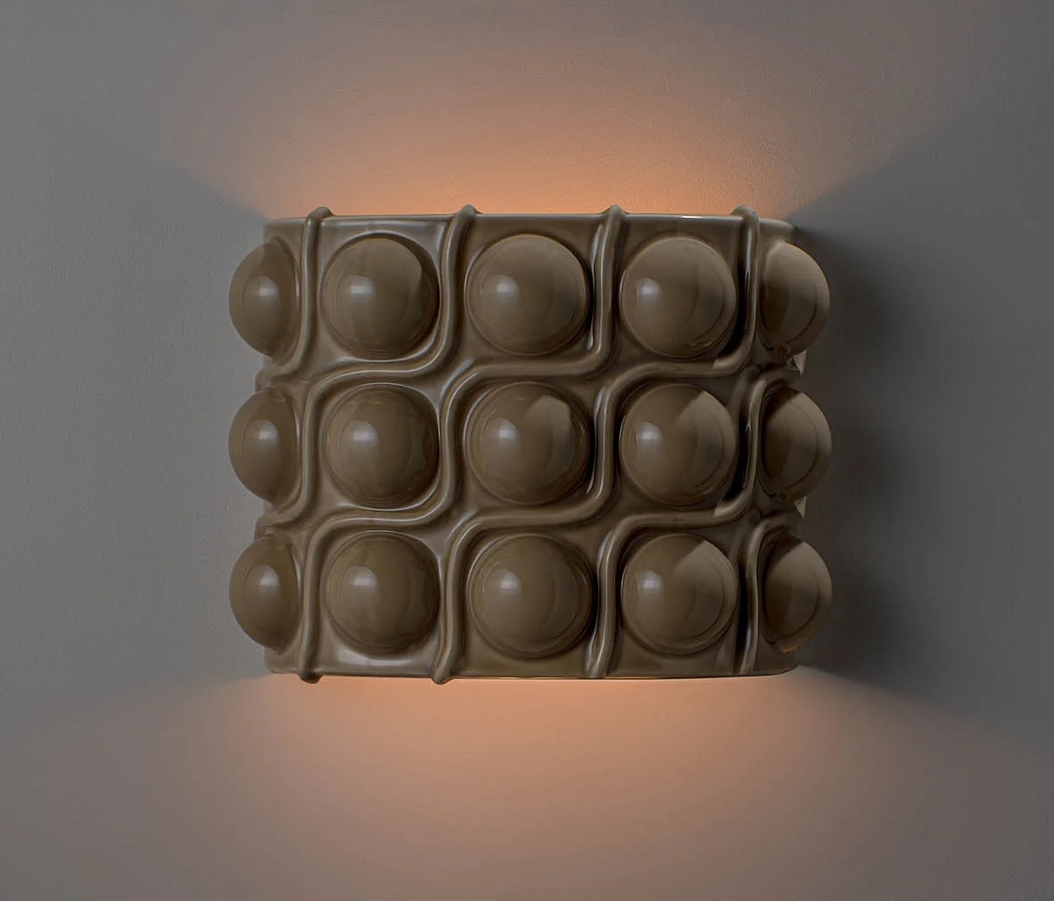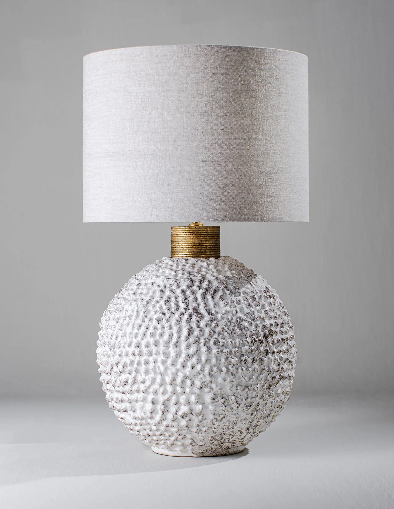 The Casaubon round lamp large is an over-scaled piece, inspired by an African artefact found in a Parisian flea market. Each bobble that makes up the Casaubon’s texture is revealed when illuminated. Now available in Clay White, a subtly mottled brown and white glaze or Biscuit.